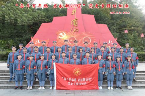 重庆市人力资源开发服务中心“奋斗百年路 启航新征程” 发布时间:2021-09-26 9月24日上午,重庆市人力资源开发服务中心“奋斗百年路 启航新征程”党史培训班在井冈山开班。井冈山大学继续教育与培训学院原副院长李忠同志致辞并为培训班授旗,重庆市綦江区人力资源和社会保障局党组成员、社会保险事务中心副主任杨昌水同志出席开班式并讲话,培训班共34名学员参加。本次培训自9月23日开始至29日结束,培训班开展《弘扬伟大建党精神》《井冈山斗争与井冈山精神》等专题教学,在井冈山及周边地区开展现场教学和体验教学。 上一条:【喜报】中共上海济光职业技术学院委员会发来感谢信 下一条:学院召开红色培训带班员工作交流座谈会