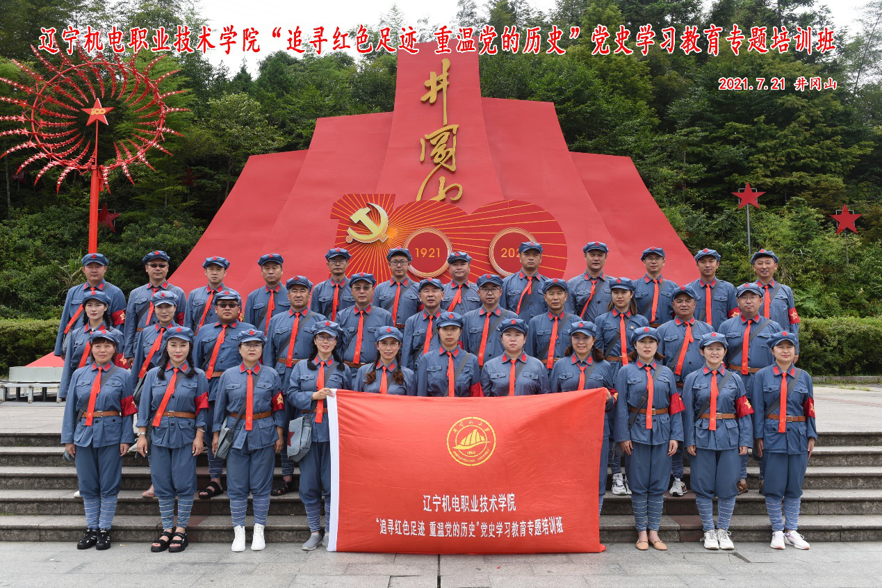 追寻红色足迹,重温党的历史”——辽宁机电职业技术学院专题培训班在我校开班 发布时间:2021-07-27 7月16日,辽宁机电职业技术学院“追寻红色足迹 重温党的历史”党史学习专题培训班在我校开班,辽宁机电职业技术学院党委副书记兼纪委书记陈秋鹏同志出席开班式并讲话,井冈山大学继续教育与培训学院原正处级副院长李忠致辞并为培训班授旗,辽宁机电职业技术学院34名学员参加了开班式。 本次培训自7月16日开始至7月21日结束,期间在我校开展《党的百年辉煌与井冈山斗争》等专题教学,在井冈山及周边地区开展现场教学和体验教学。(继续教育与培训学院) 上一条:2021年茂名市教育系统基层党建工作专题培训班在我校开班 下一条:华北电力大学电子与通信工程系“学党史、忆初心,追寻光辉足迹”党史学习教育培训班 在我校开班