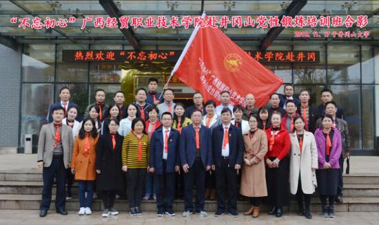 11月17日8:30,“不忘初心”广西经贸职业技术学院赴井冈山综合能力提升培训班在我校开班。培训的主题为“学习革命传统、强化使命担当、增强工作本领。”井冈山大学党委常委、副校长陈小林致辞并为培训班授旗,井冈山大学继续教育与培训学院副院长王志民主持开班式,广西经贸职业技术学院党委书记黄国健作动员讲话,广西经贸职业技术学院32名学员参加开班式。