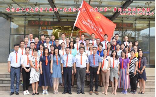 哈尔滨工程大学骨干教师“走进井冈山 立德立学”井冈山培训班在我校开班 发布时间:2018-09-01 8月24日下午,哈尔滨工程大学骨干教师“走进井冈山 立德立学”井冈山培训班在我校开班。培训的主题为“走进井冈山立德立学。”哈尔滨工程大学工会副主席赵镇及40余名学员参加开班式。本次培训自8月23日-8月27日在我校开展《多维视角下的中国梦――学习党的十九大精神的几点体会》、《井冈山斗争与井冈山精神》等专题教学,在井冈山及周边地区开展现场教学和体验教学。 上一条:华北电力大学后勤服务集团党总支井冈山综合能力提升培训班在我校开班 下一条:天津市教育考试院赴井冈山革命传统教育培训班(第二期)在我校开班