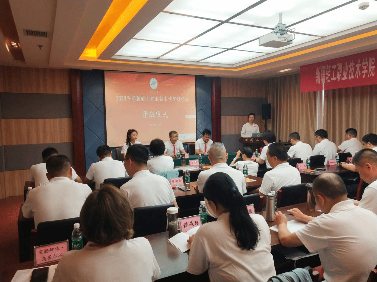 6月6日上午,新疆开放大学办学系统思政课骨干教师实践研修班在井冈山大学新学术交流中心开班,井冈山大学继续教育与培训学院副院长王志民为培训班致辞并授旗,新疆轻工职业技术学院党委委员、副院长李汶革出席会议,全体学员参加了开班式。