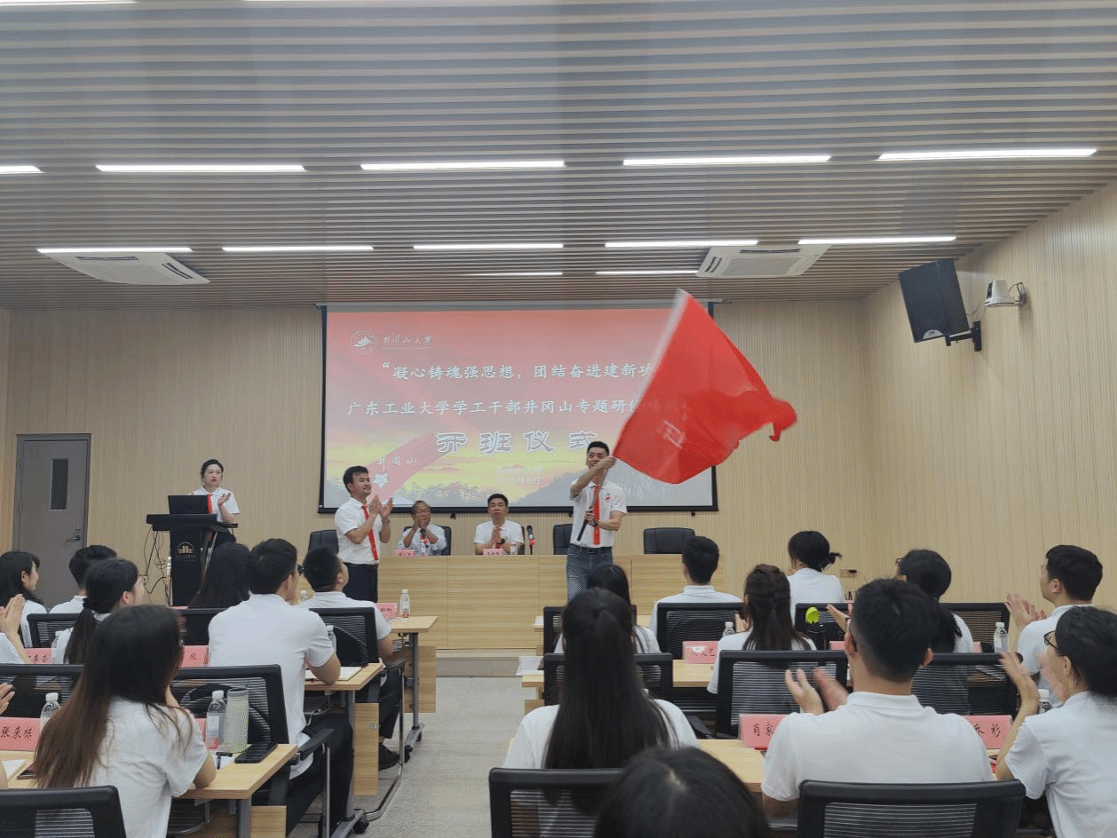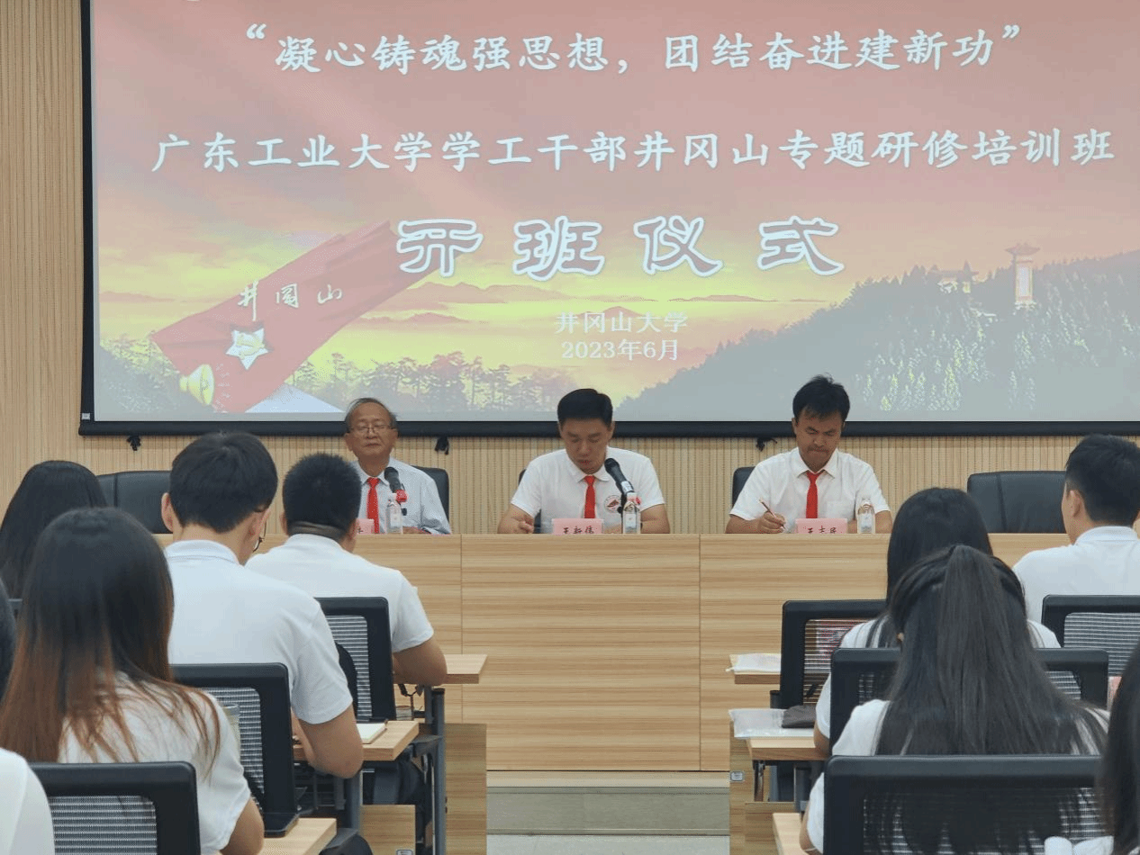 广东工业大学学工管理人员井冈山专题研修培训班在我校开班 发布时间:2023-06-13 6月12日,广东工业大学学工管理人员井冈山专题研修培训班在我校开班,井冈山大学继续教育与培训学院副院长王志民同志致辞并授旗,广东工业大学党委学生工作部、武装部副部长,学生工作处副处长王新伟同志讲话,开班式由井冈山大学继续教育与培训学院带班老师周三牛主持,全体学员参加了开班式。本次培训自6月11日开始至6月16日结束,期间在我校开展《守正创新 认真做好新时代思想政治工作》《井冈山斗争和井冈山精神》等专题教学,在井冈山及周边地区开展现场教学和体验教学等。(图文:罗铖 审核:肖贻滨 王志民) 上一条:中国建设银行吉安市分行2023年入党积极分子暨发展对象培训班在我校开班 下一条:秦都区“传承红色基因 砥砺初心使命”综合能力提升培训班在我校开班