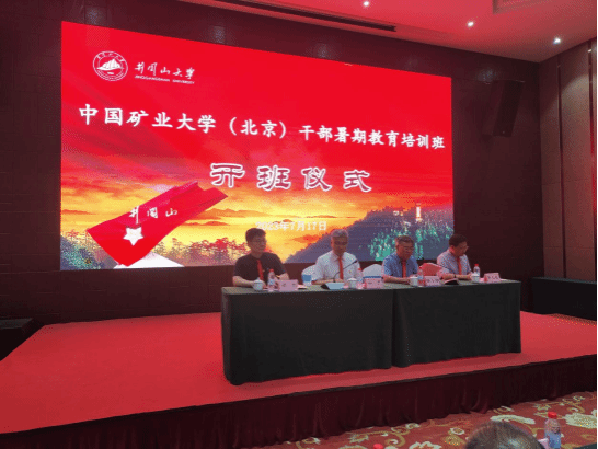 7月17日,中国矿业大学(北京)管理人员暑期教育培训班顺利开班,中国矿业大学党委常委、副书记安宇出席并讲话,井冈山大学党委常委、副校长陈小林致辞并为培训班授旗,中国矿业大学党委常委、副校长谭凯出席,开班式由井冈山大学对外联络(校友服务)中心主任易九桂主持。