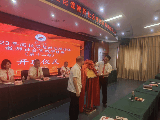 7月19日,2023年高校思想政治理论课教师社会实践研修班(第十二期)在我校开班,井冈山大学继续教育与培训学院院长贺晓斌,承德护理职业学院副院长郝秀喜,焦作大学马克思主义学院党总支书记张育琳,承德医学院马克思主义学院院长李德臣,湖南体育职业学院马克思主义学院院长钟小红,天津渤海职业技术学院思政部部长闫颖,山东工商学院马克思主义学院副院长邓云,唐山幼儿师范高等专科学校思政教研室主任苗翠环,重庆护理职业学院张星玉出席,本次开班式由井冈山大学继续教育与培训学院带班员康卓主持,全体学员参加开班式。