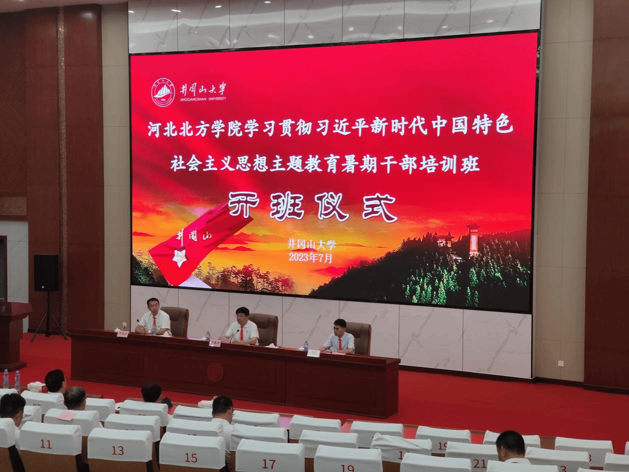 7月22日,河北北方学院学习贯彻习近平新时代中国特色社会主义思想主题教育暑期管理人员培训班在我校开班,井冈山大学党委常委、副校长刘利民致辞并为培训班授旗。河北北方学院党委副书记、校长牛春雨出席开班式并讲话,开班式由井冈山大学继续教育与培训学院院长贺晓斌主持。