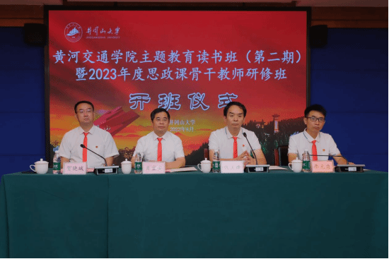 8月14日,黄河交通学院主题教育读书班(第二期)暨2023年度思政课骨干教师研修活动在我校新学术交流中心开班,井冈山大学党委常委、副校长肖宜安为培训班致辞并授旗,黄河交通学院校党委副书记、副校长仇正锋,黄河交通学院马克思主义学院党总支书记李元应出席,开班式由井冈山大学继续教育与培训学院院长贺晓斌主持,全体学员参加了开班式。