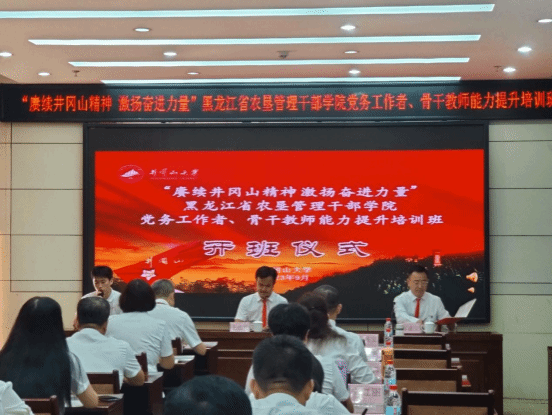 9月20日,“赓续井冈山精神 激扬奋进力量”黑龙江省农垦管理干部学院党务工作者、骨干教师能力提升培训班在我校开班,井冈山大学继续教育与培训学院副院长王志民为培训班致辞,黑龙江省农垦管理干部学院党委委员、纪委书记苏盛宝同志讲话,开班式由井冈山大学继续教育与培训学院李书阳主持,全体学员参加了开班式。