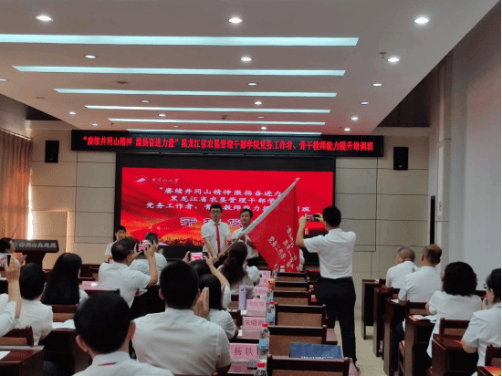 王志民为培训班授旗,他介绍了学校的基本情况,苏盛宝对培训班提出了明确的要求。