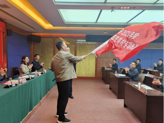 贺晓斌为培训班致辞并授旗,他介绍了学校的基本情况,希望各位学员珍惜培训机会,始终葆有学习的热情,继续发扬军人能吃苦、能战斗的作风,增强学习的自觉性和主动性,全身心投入学习,切实做到学、思、用贯通。知、信、行统一,确保学有所思、学有所悟、学有所获。