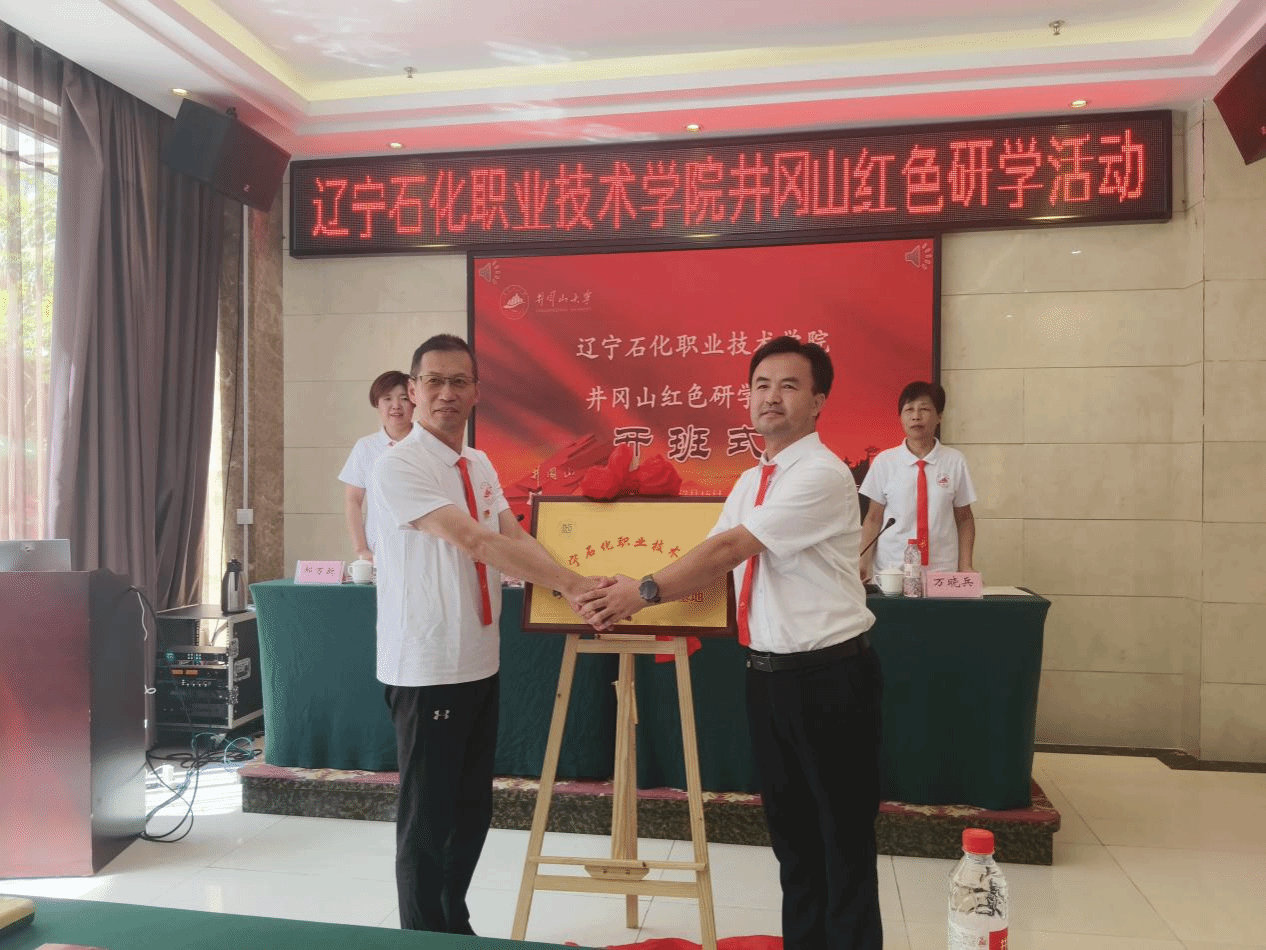 王志民为培训班致辞并授旗,并简要介绍了学校的基本情况。开班式上,辽宁石化职业技术学院党委委员、副院长郝万新与井冈山大学继续教育与培训学院副院长王志民共同为基地揭牌。