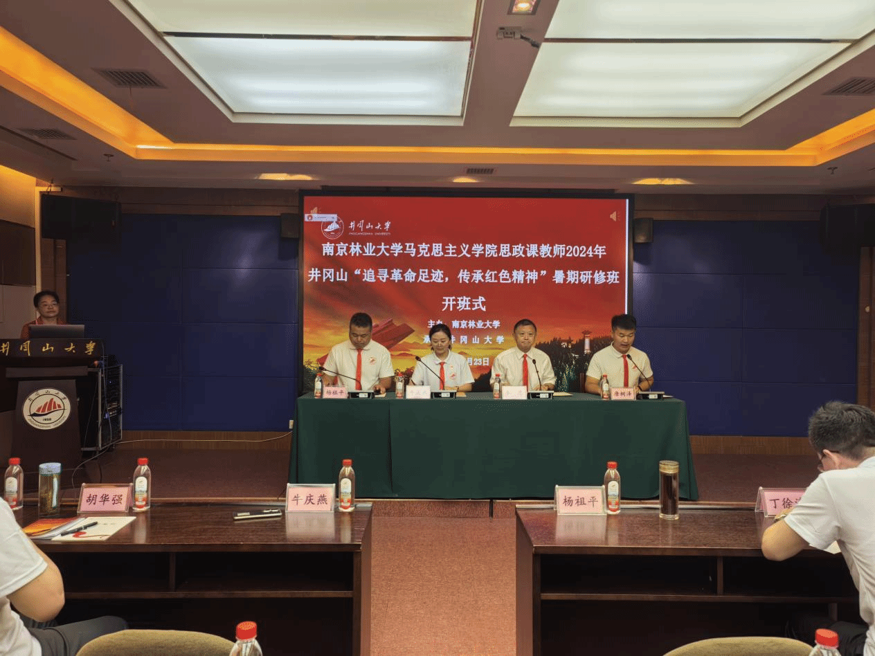 7月23日,南京林业大学马克思主义学院思政课教师2024年井冈山“追寻革命足迹 传承红色精神”暑期研修班在我校开班,南京林业大学马克思主义学院院长牛庆燕,南京林业大学马克思主义学院党委副书记、副院长杨祖平,井冈山大学马克思主义学院教授李忠出席,开班式由井冈山大学继续教育与培训学院唐树泽主持,全体学员参加了开班式。