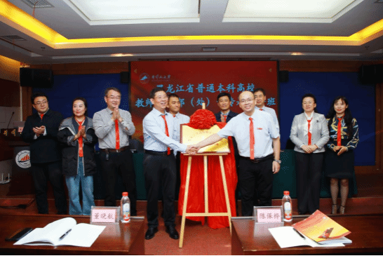 11月10日,黑龙江省普通本科高校教师工作部(处)长专题研修班在我校开班,井冈山大学党委常委、副校长黄族豪致辞并为研修班授旗,黑龙江省教育厅一级巡视员姜同河、哈尔滨师范大学副校长、黑龙江省高校师资培训中心主任徐国峰、黑龙江省高校师资培训中心常务副主任梁大战参加开班式,哈尔滨商业大学人事处(教师工作部)处长周晓生代表学员发言,黑龙江省教育厅一级巡视员姜同河与井冈山大学党委常委、副校长黄族豪共同为黑龙江省高校师资培训中心井冈山大学培训基地揭牌,开班式由继续教育与培训学院院长贺晓斌主持,全体学员参加了开班式并见证基地揭牌。