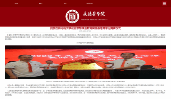 承德医学院在井冈山大学设立思想政治教育实践基地并举行揭牌仪式 发布时间:2023-07-22 (图文:罗铖 审核:肖贻滨 王志民) 上一条:铜陵学院学校中层管理人员集中培训在井冈山开班 下一条:【主题教育进行时】学院“赓续红色血脉 弘扬井冈山精神”红色教育培训班在井冈山开班