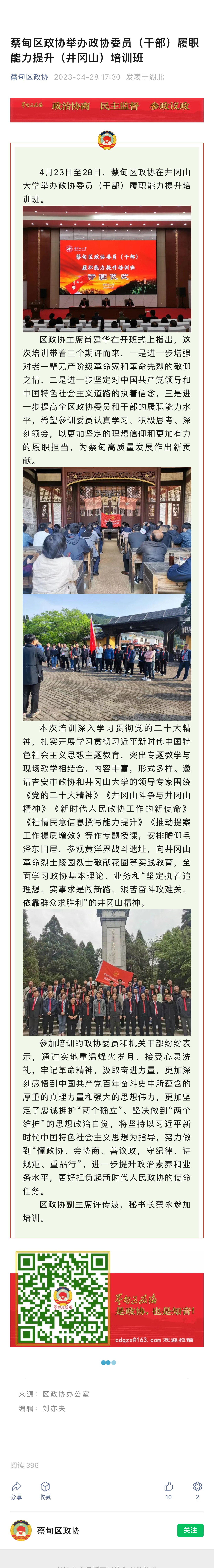 蔡甸区政协举办政协委员履职能力提升(井冈山)培训班 发布时间:2023-04-30 (图文:贺薇 审核:肖贻滨 王志民) 上一条:山东大学举办党外人士政治能力提升专题培训班 下一条:党外人士政治能力提升专题培训班学员孙琇学习心得